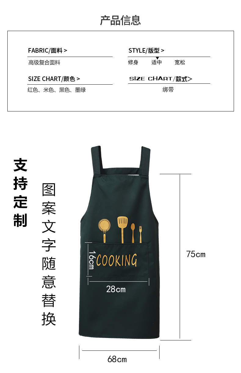商品名称:国产 背带日式家用厨房防水防油围裙时尚大人女男士工作服定制logo印字