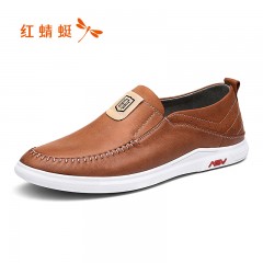 红蜻蜓 春季新款真皮休闲软底驾车鞋套脚乐福皮鞋子男