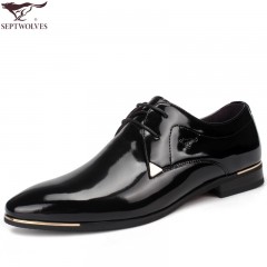 七匹狼 男鞋新款时尚漆皮头层牛皮男士亮面真皮商务结婚宴会皮鞋子