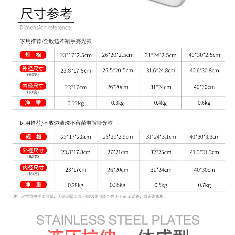 商品名称:国产 304不锈钢长方形托盘食品级加厚医用方盘