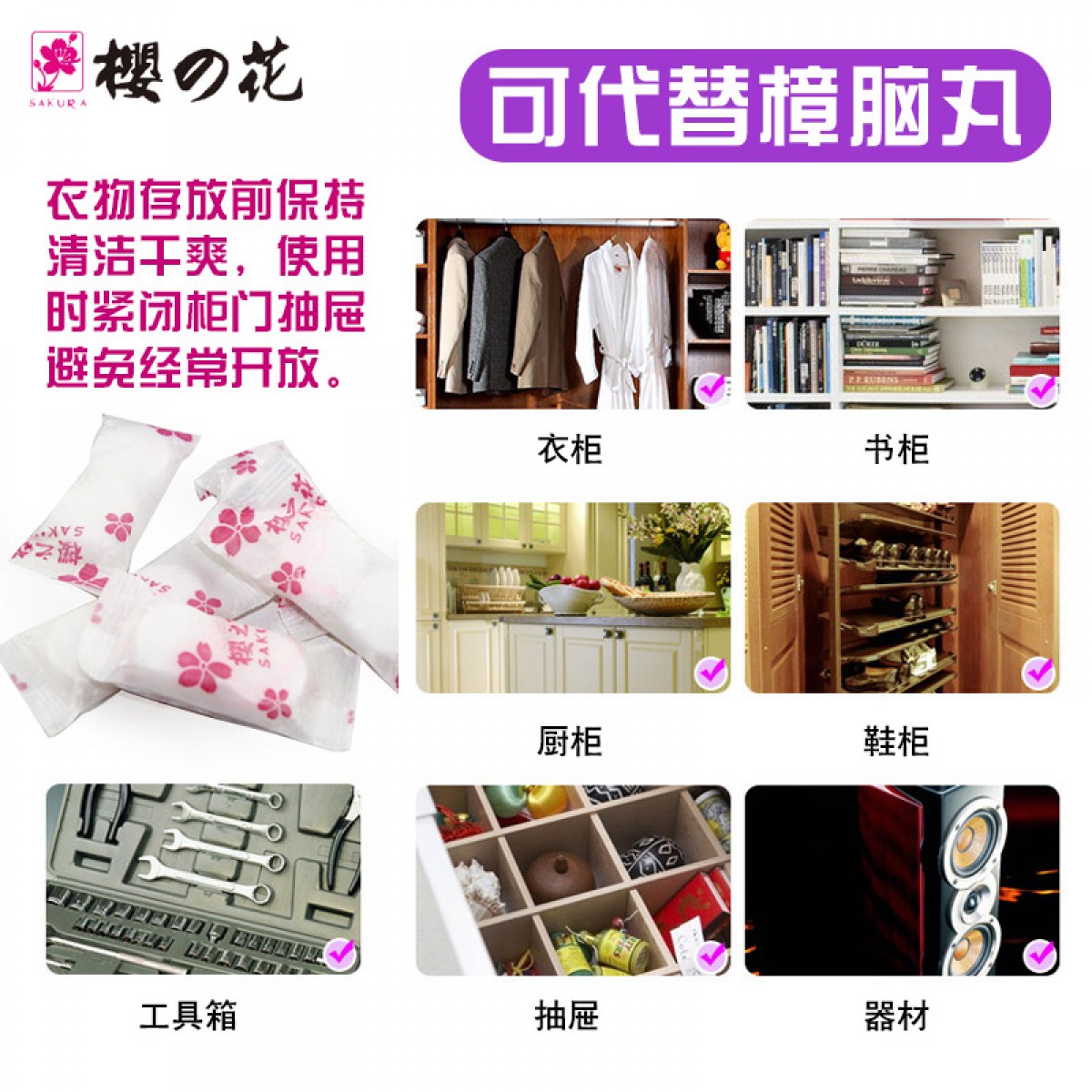 商品名称:樱之花 防蛀防霉片剂500g樟脑丸衣柜衣物衣橱用家用芳香驱虫防蟑螂
