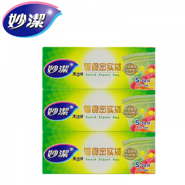 商品名称:妙洁 美洁可零食密实袋*3盒 60只装双封条PE食品密封袋自封保鲜袋