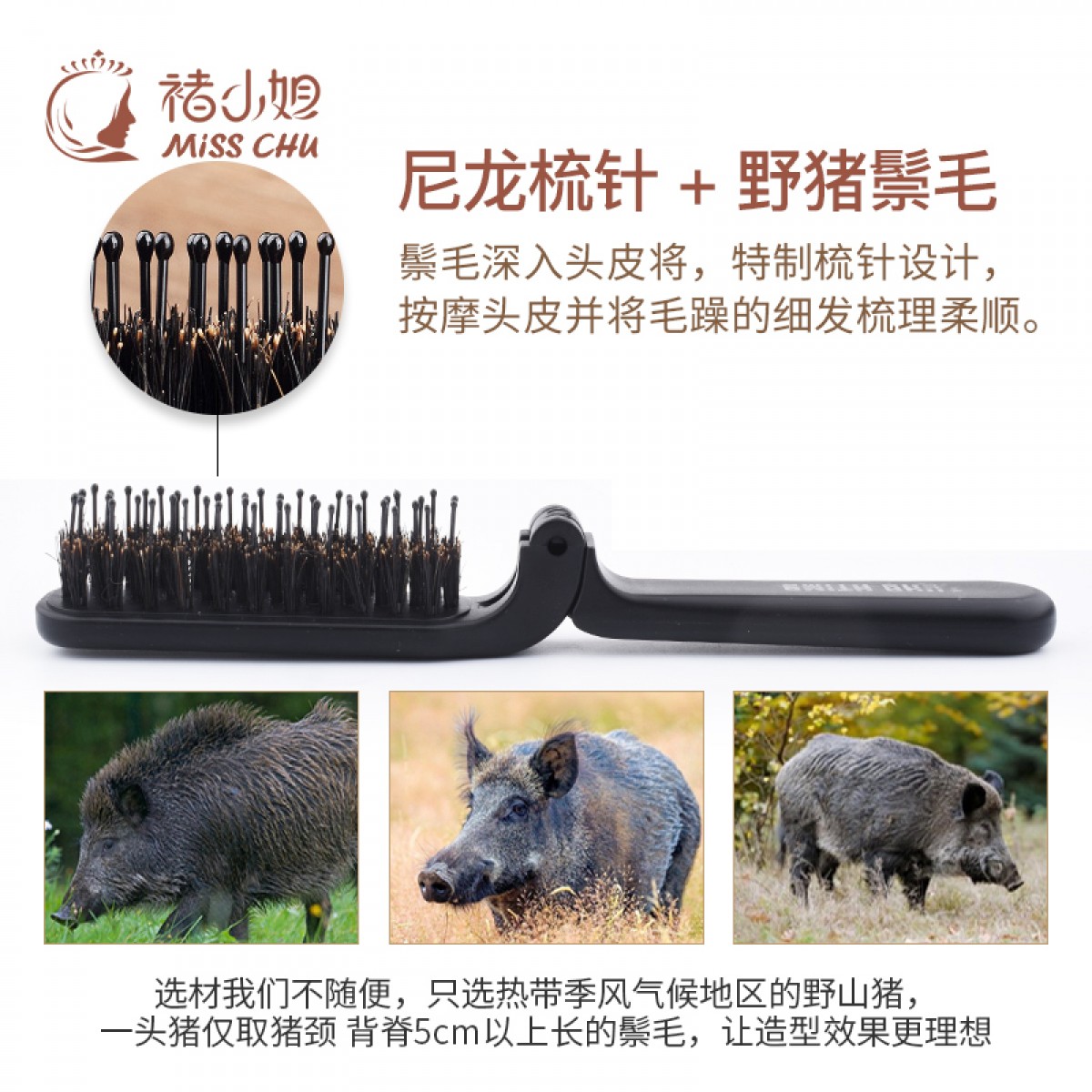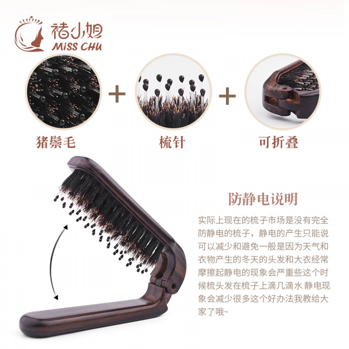 商品名称:褚小姐 折叠梳子女家用猪鬃毛梳子卷发梳旅行便携梳子宽齿梳随身带