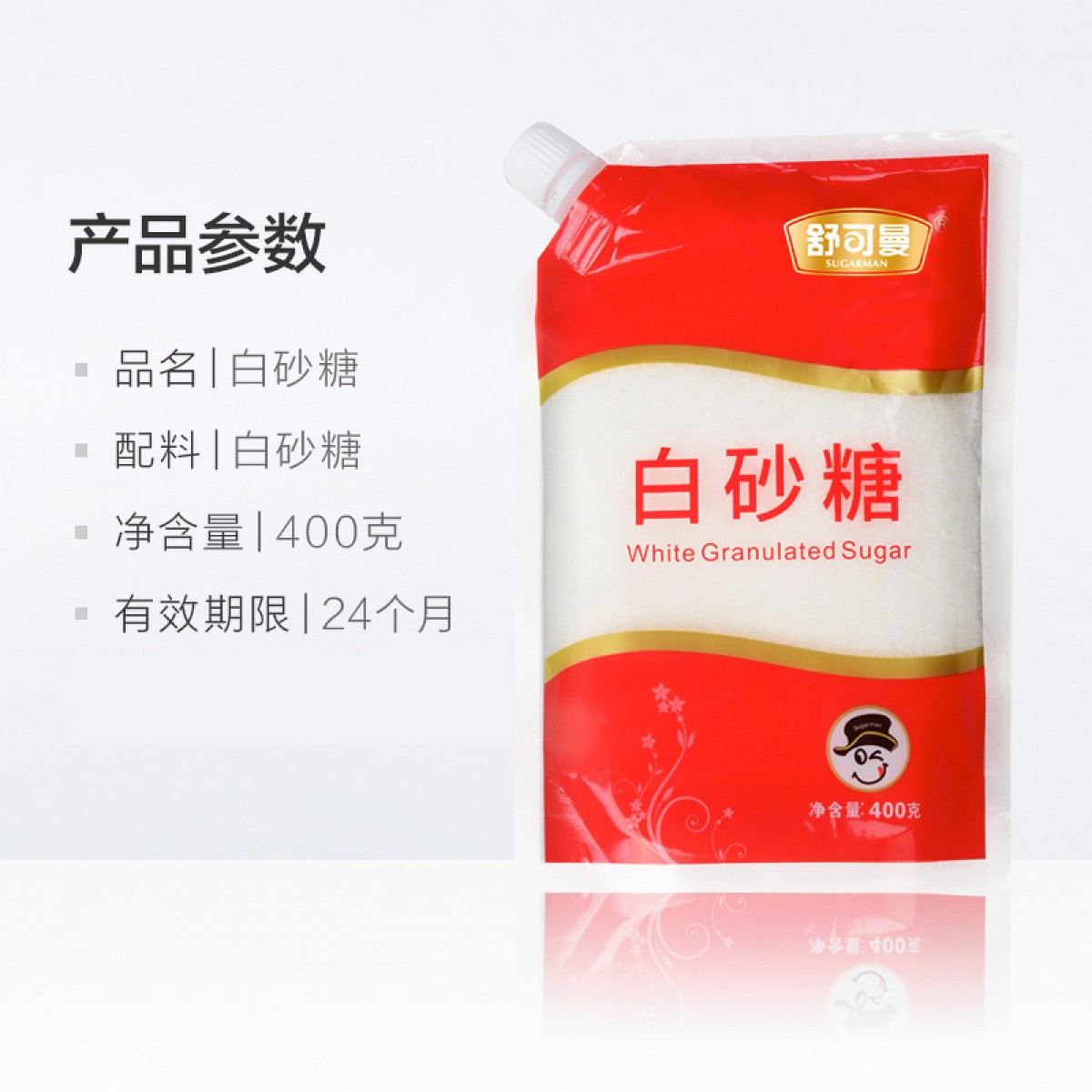 商品名称:国产 白砂糖400g袋盖设计
