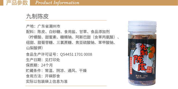 商品名称:来伊份 九制陈皮25g/罐