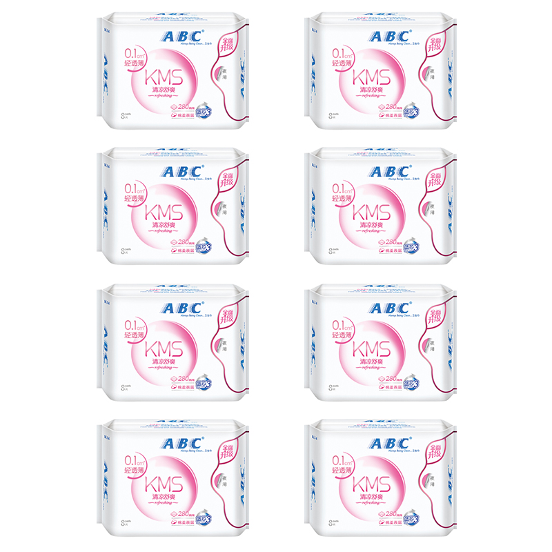 商品名称:ABC 卫生巾0.1cm清凉舒爽夜用防侧漏280mm*8包夜用C44