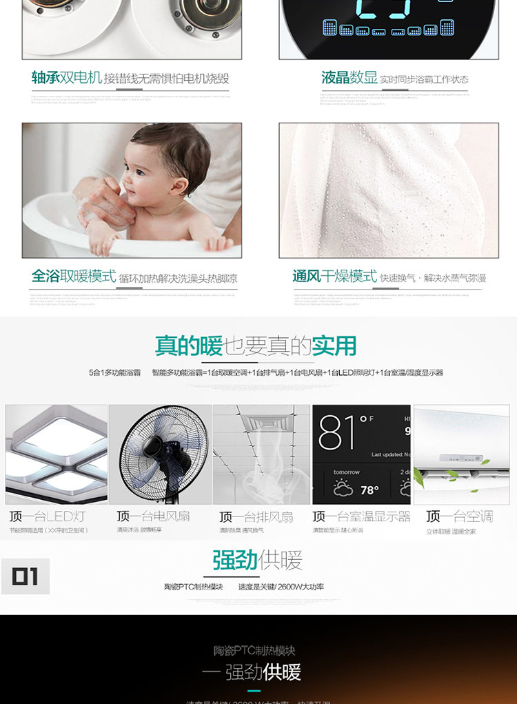 商品名称:四季沐歌 浴霸集成吊顶五合一风暖浴霸 M-YF5001