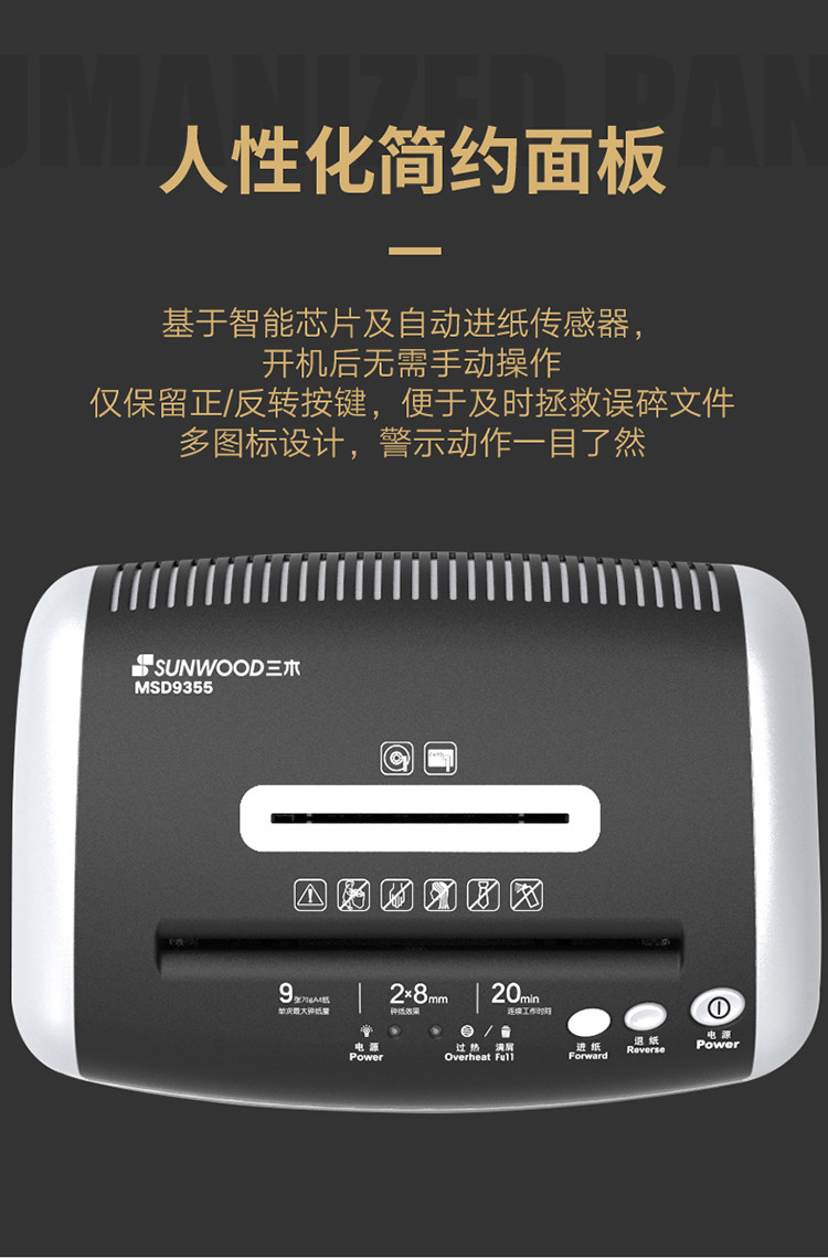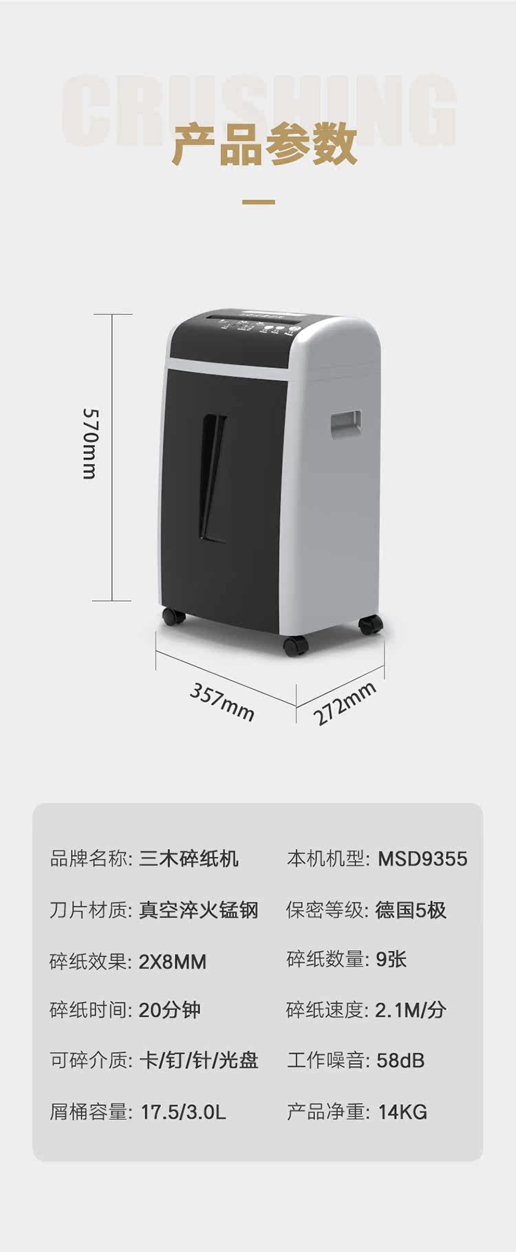 商品名称:★三木 锰钢侠系列碎纸机 碎光盘双入口静音五级 MSD9355