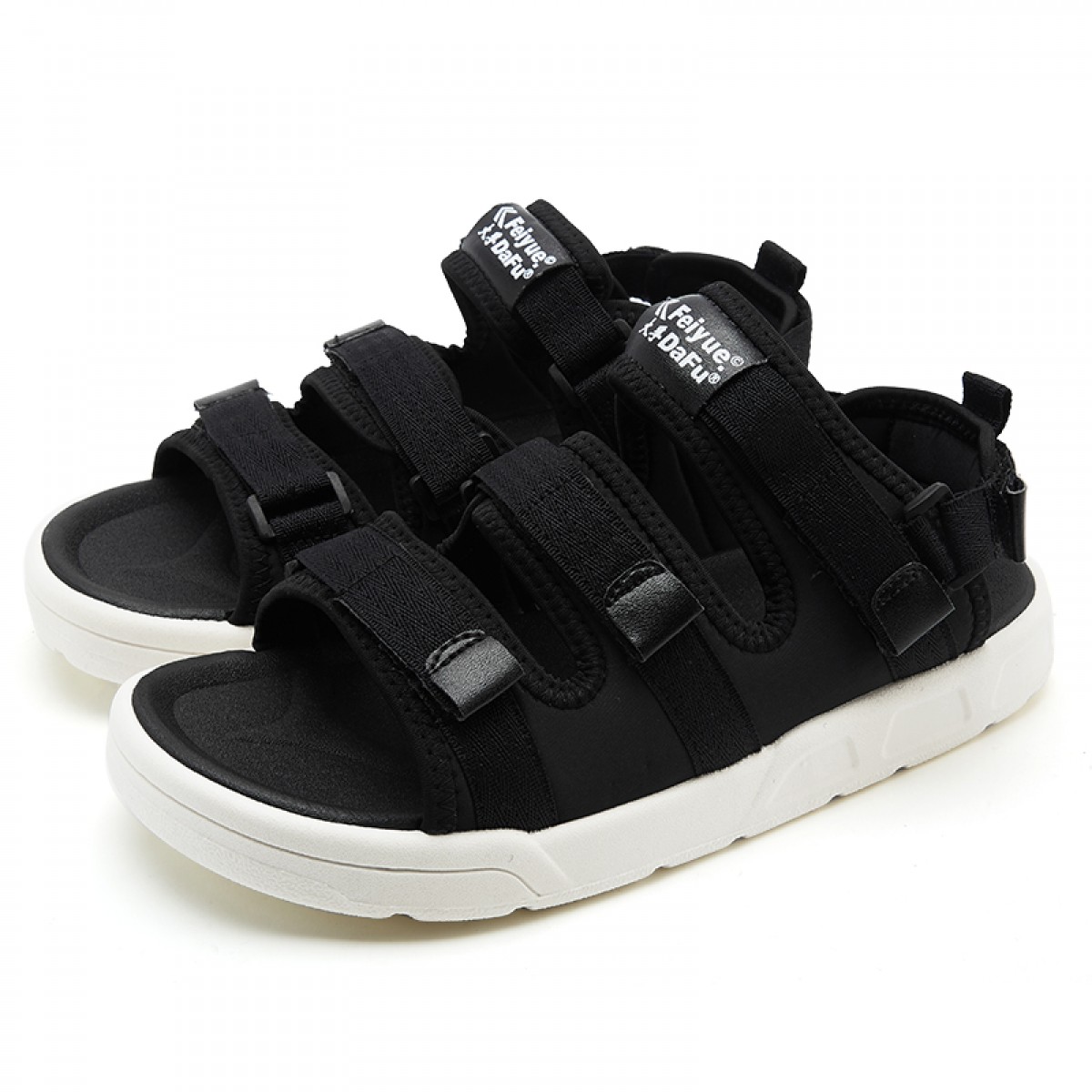 feiyue/飞跃 凉鞋女夏季新款魔术贴百搭沙滩镂空平底鞋厚底休闲鞋