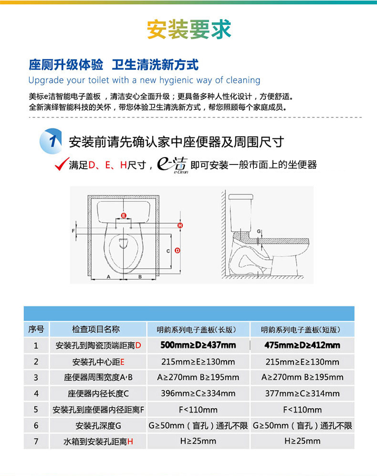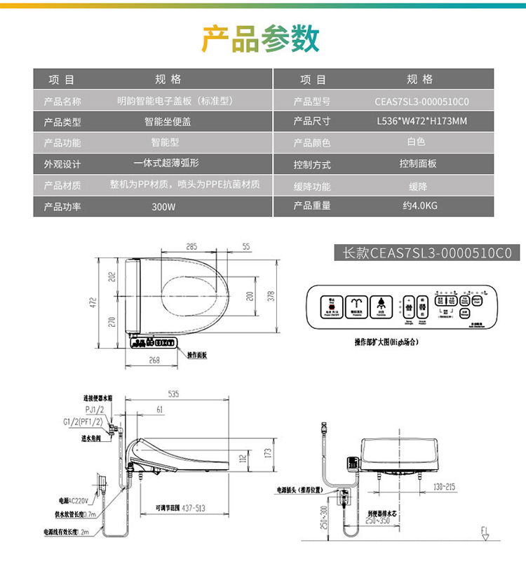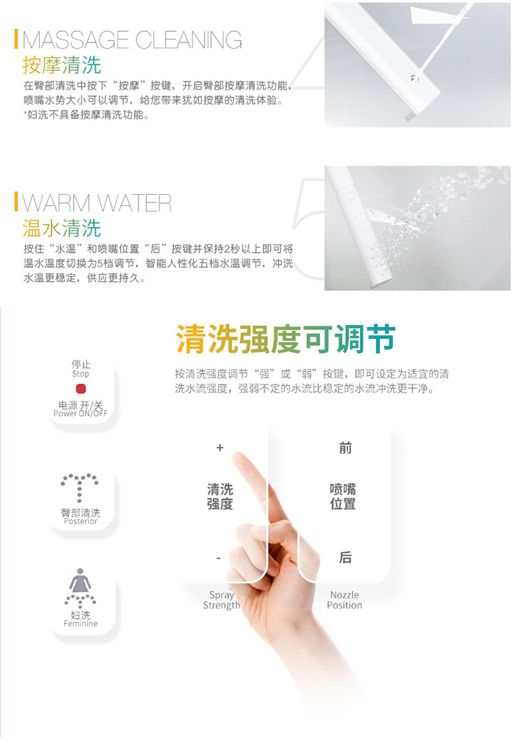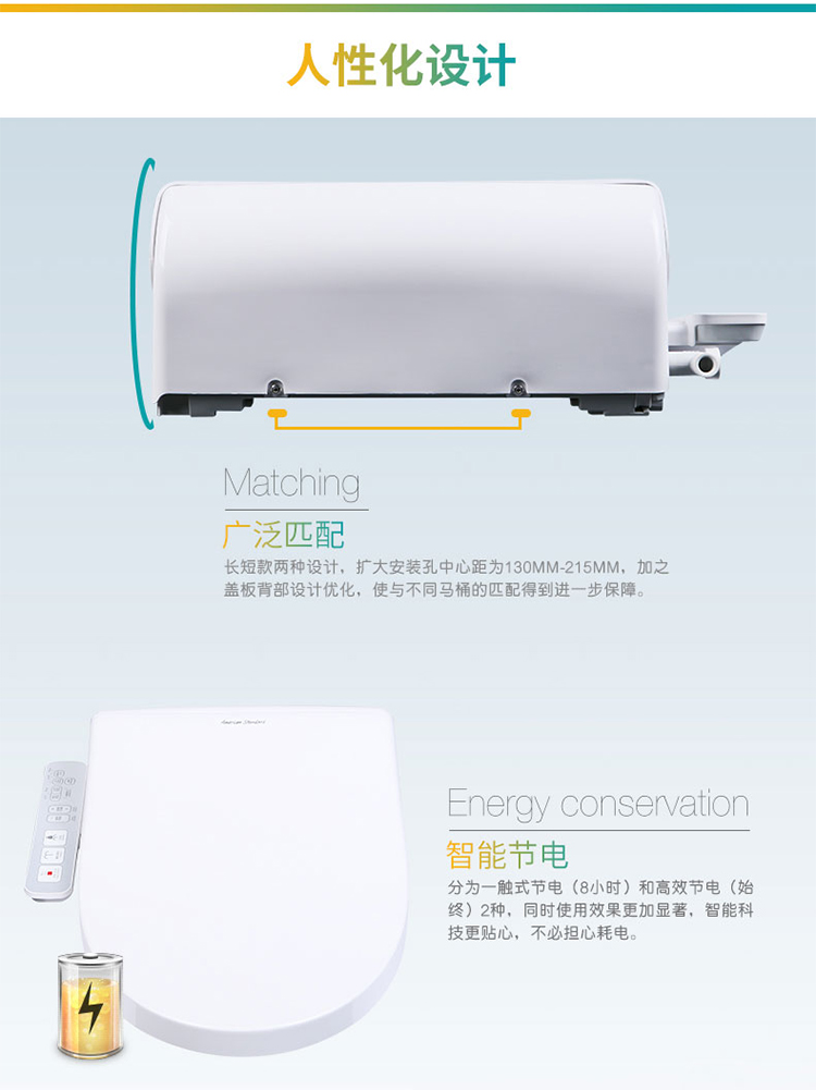 商品名称:美标 明韵智能电子盖板马桶盖洁身器标准型长款(座圈加热、双喷头、按摩清洗) CEAS7SL3