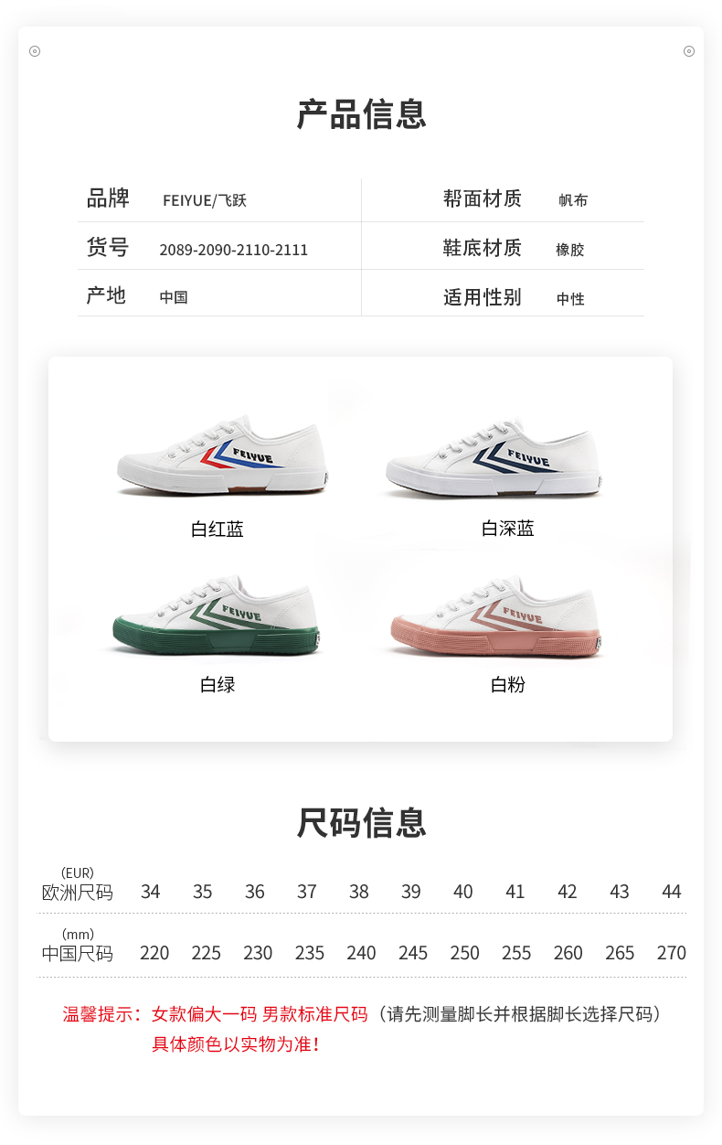 商品名称:feiyue/飞跃 女鞋帆布鞋春季新款小白鞋低帮板鞋情侣款街拍潮鞋