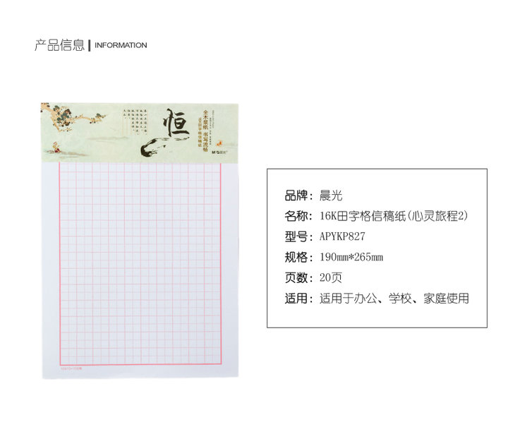商品名称:晨光 1620田字格信稿纸