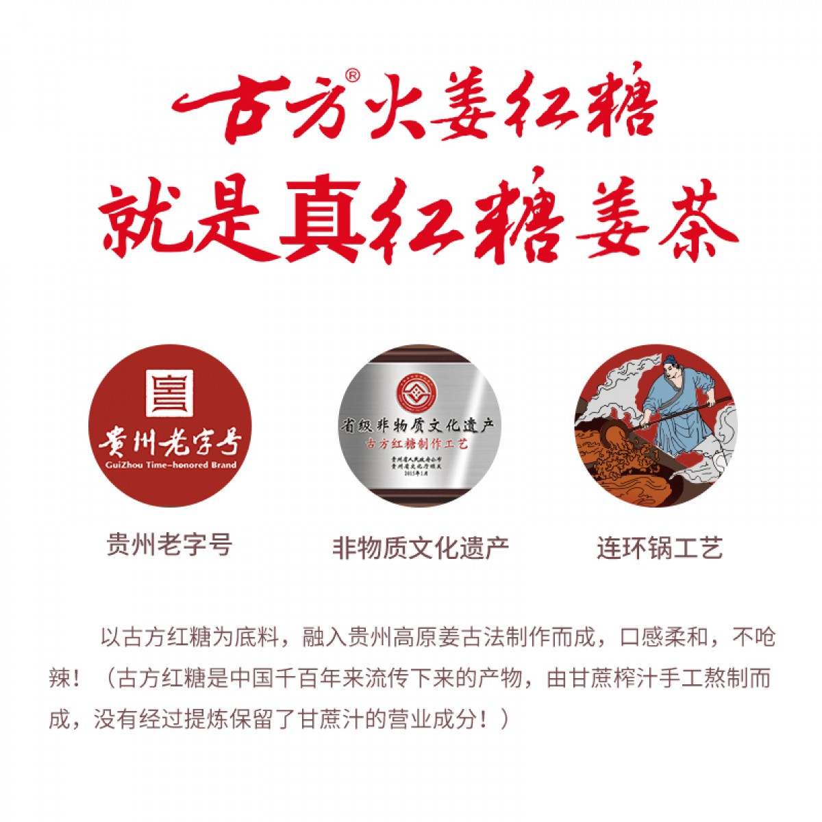商品名称:古方 红糖姜茶块黑糖手工大姨妈女生经期老姜汤生姜汁姜母茶