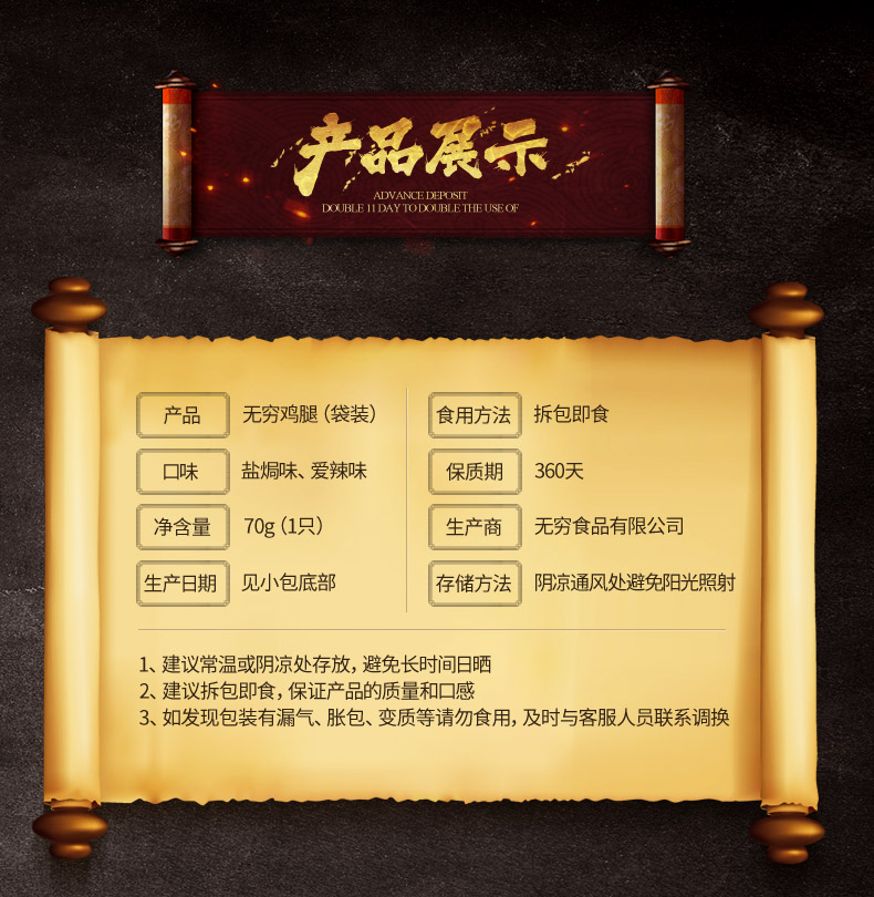 商品名称:无穷 盐焗鸡腿爱辣鸡腿袋装