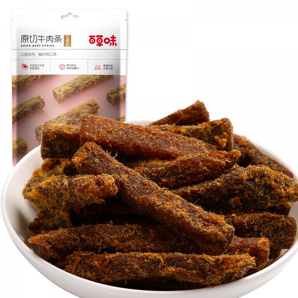 商品名称:百草味 原切牛肉条50g/袋五香味肉干肉脯休闲零食