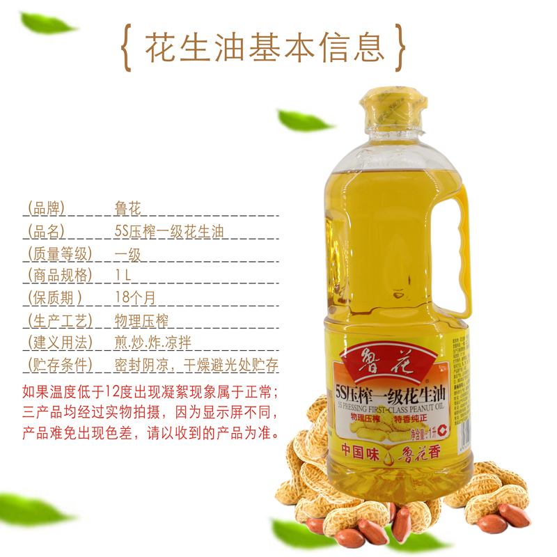 商品名称:鲁花 5S压榨一级花生油 1L食用油 桶装4升 物理压榨植物油