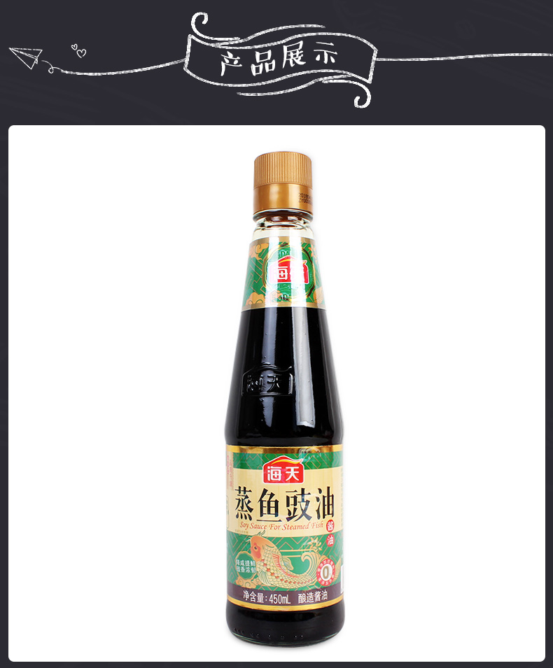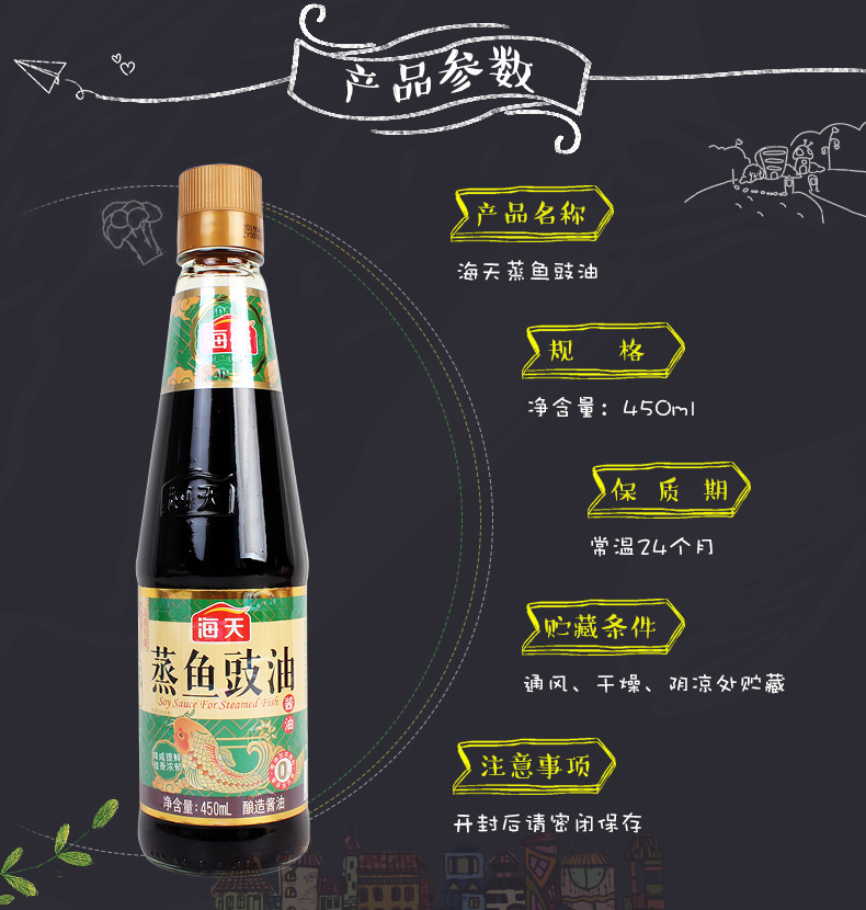 商品名称:海天 蒸鱼豉油450ml/瓶 酿造酱油 生抽 美味新鲜