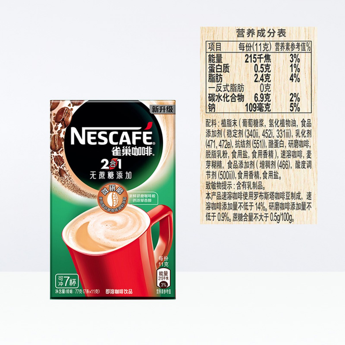 商品名称:雀巢 咖啡1+2 微研磨无蔗糖7条