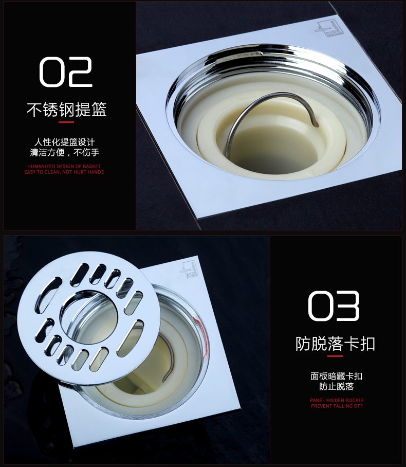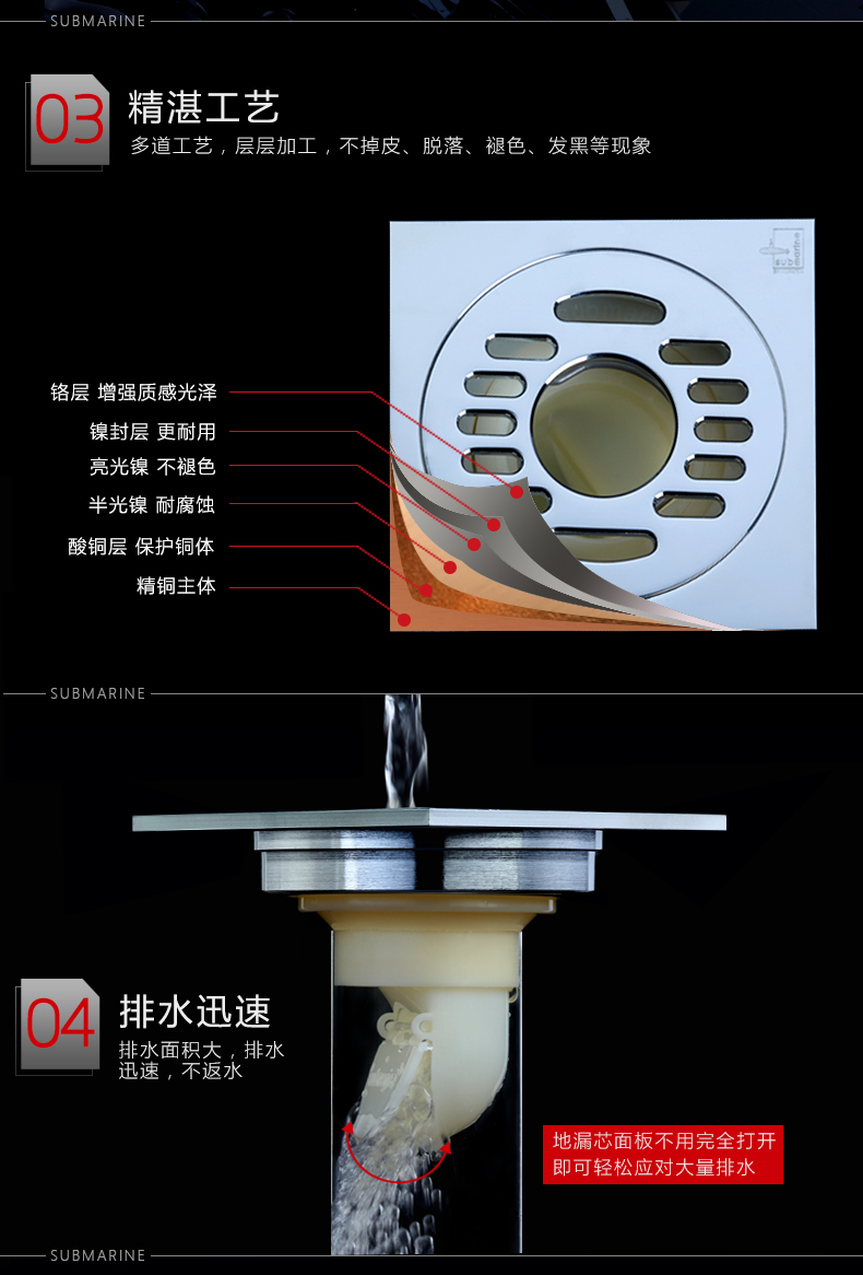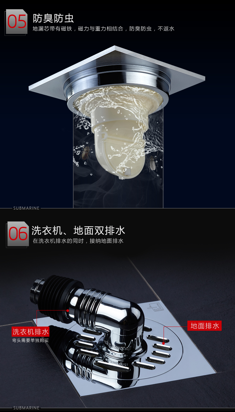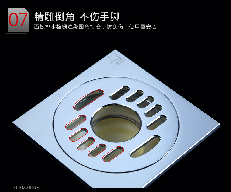 潜水艇 洗衣机多用四防地漏 自动密封 铜镀铬镜面 TF50-10X