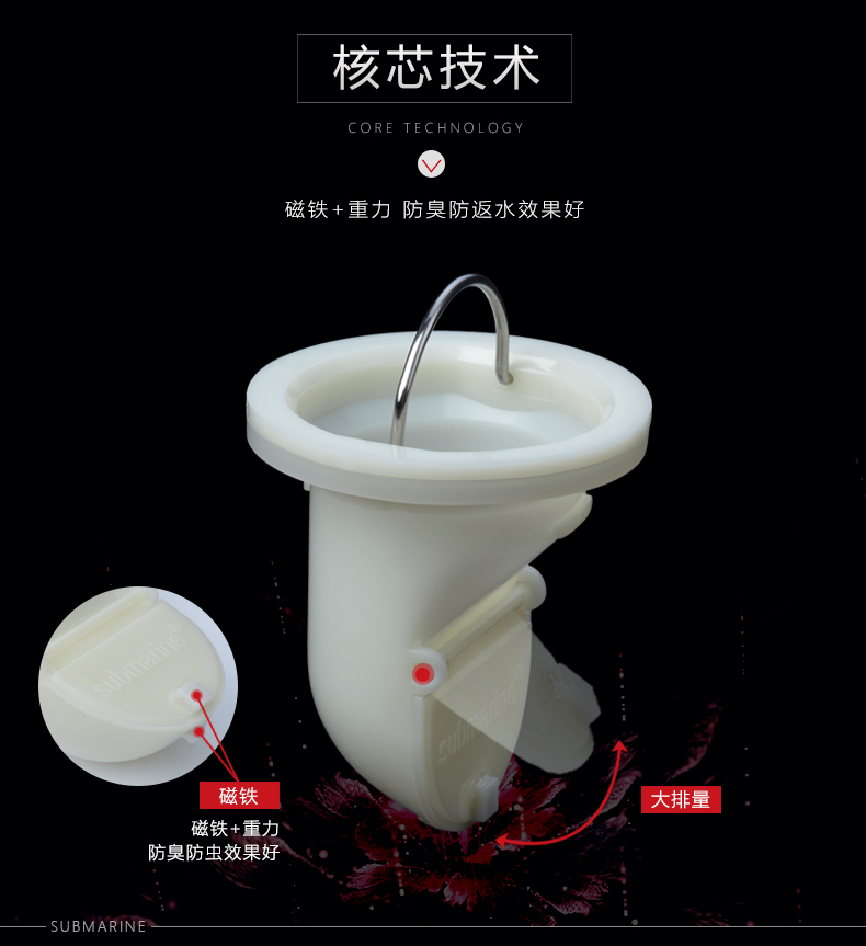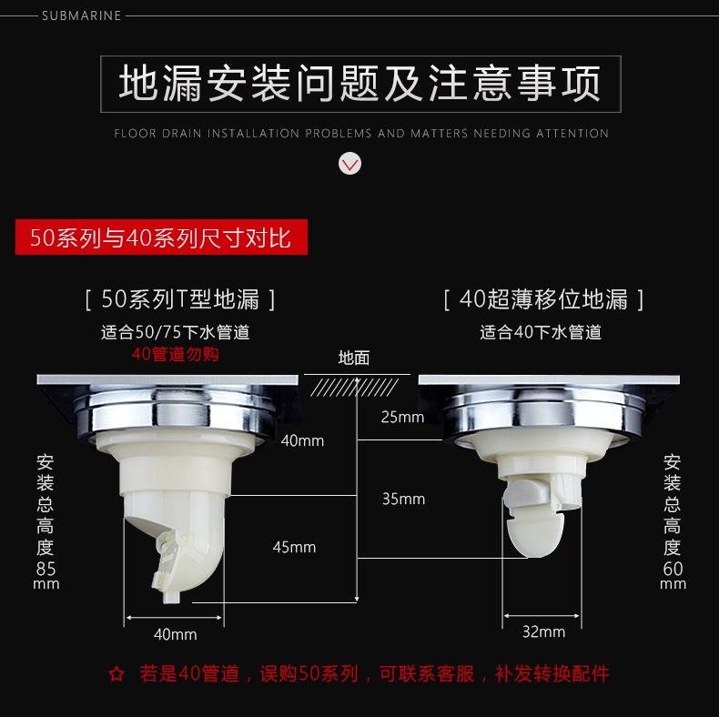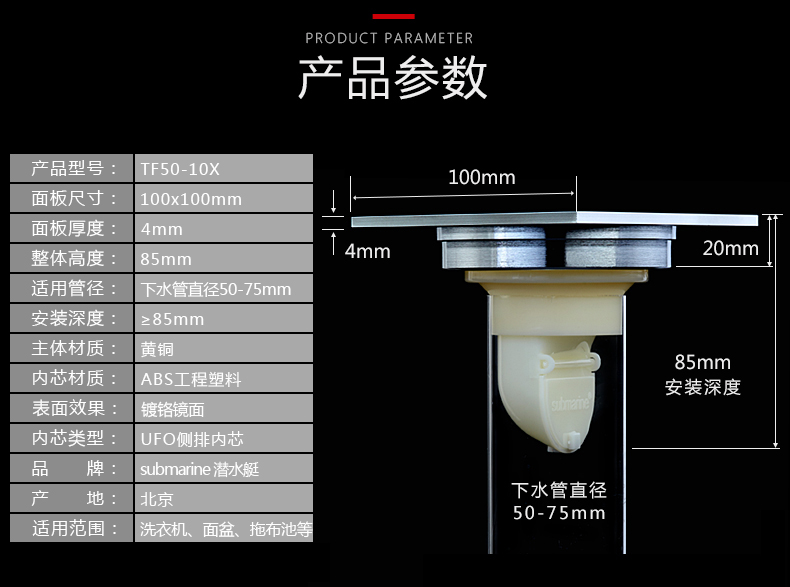 商品名称:潜水艇 洗衣机多用四防地漏 自动密封 铜镀铬镜面 TF50-10X