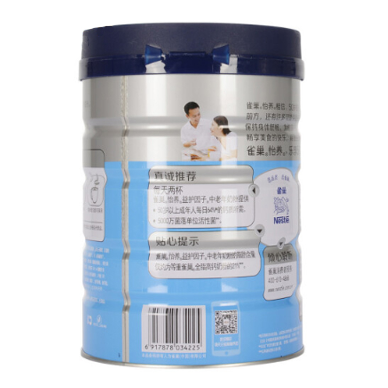 商品名称:雀巢 成人奶粉 罐装 怡养中老年高钙配方奶粉 850g(新旧包装随机发放)