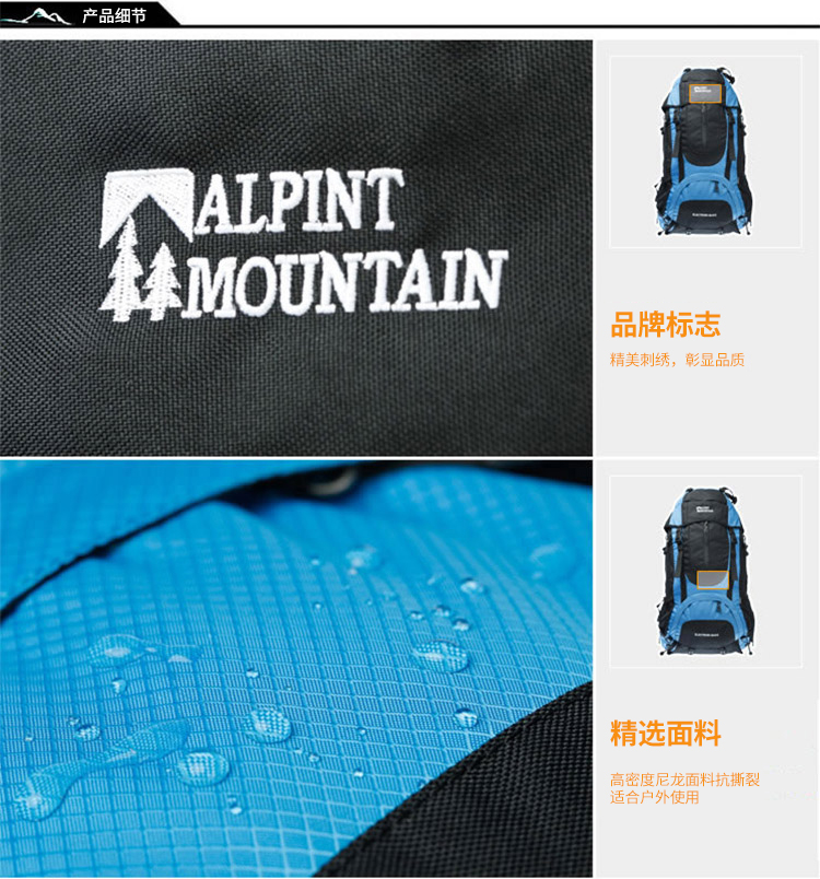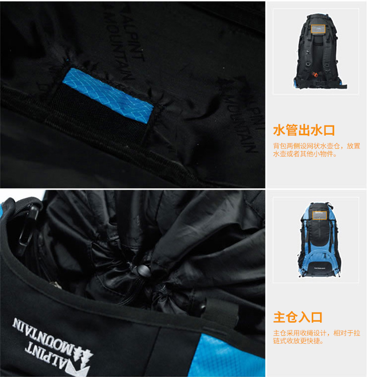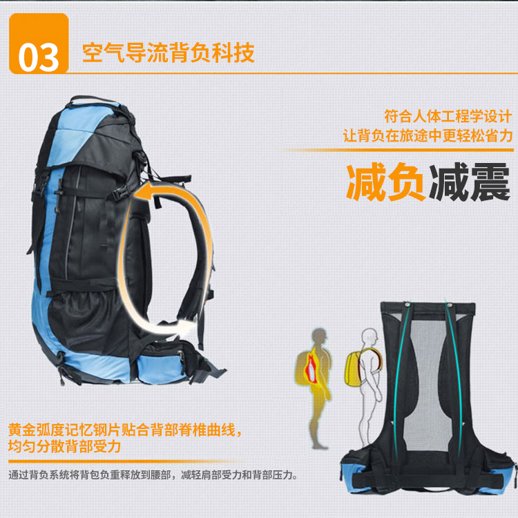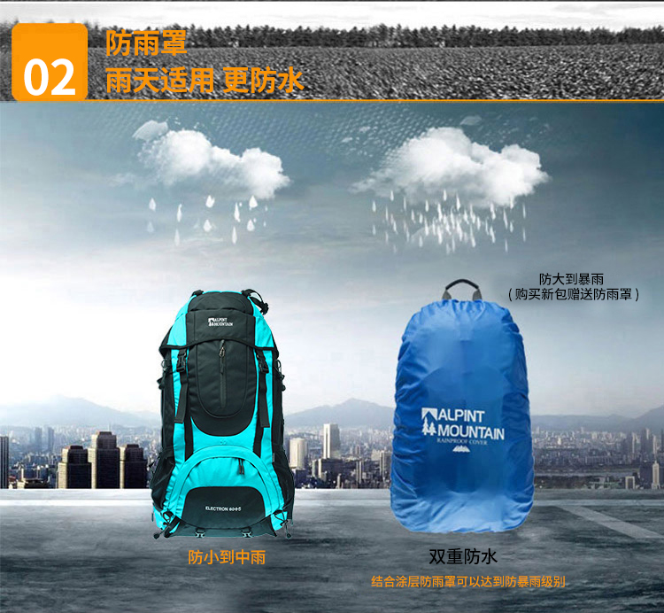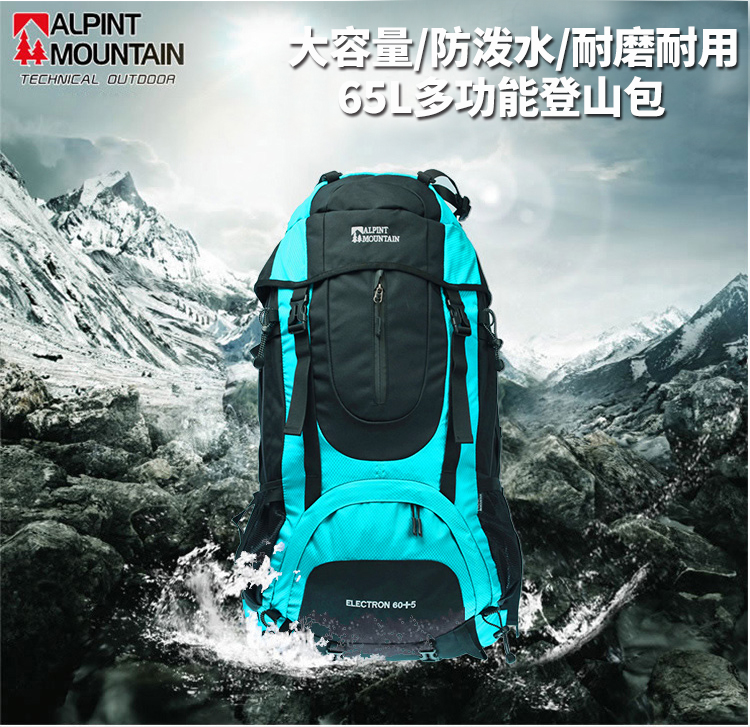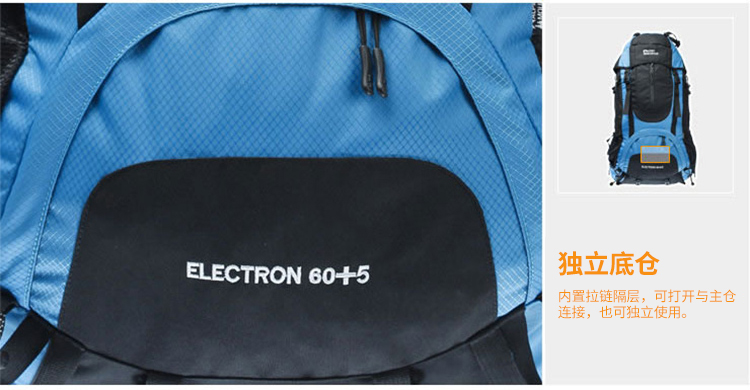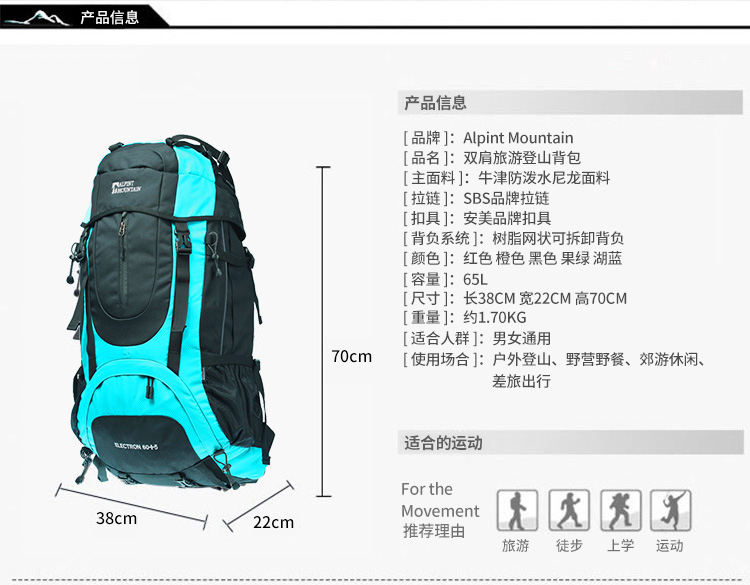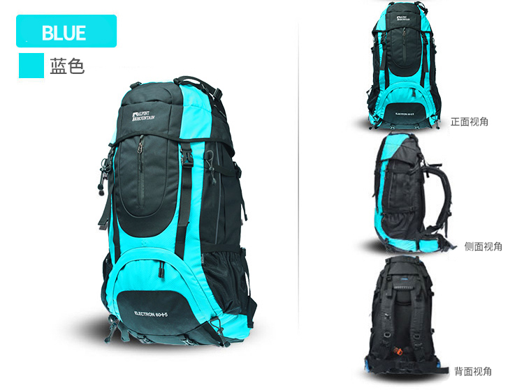 商品名称:埃尔蒙特 登山包双肩包附带防雨罩65L 610-026 湖蓝