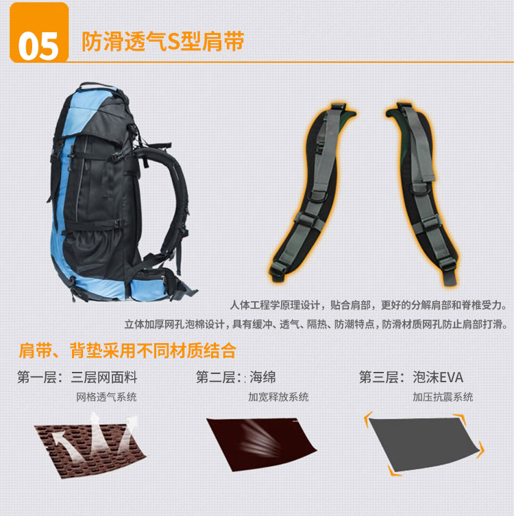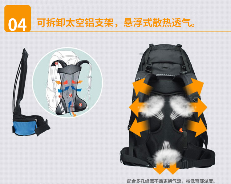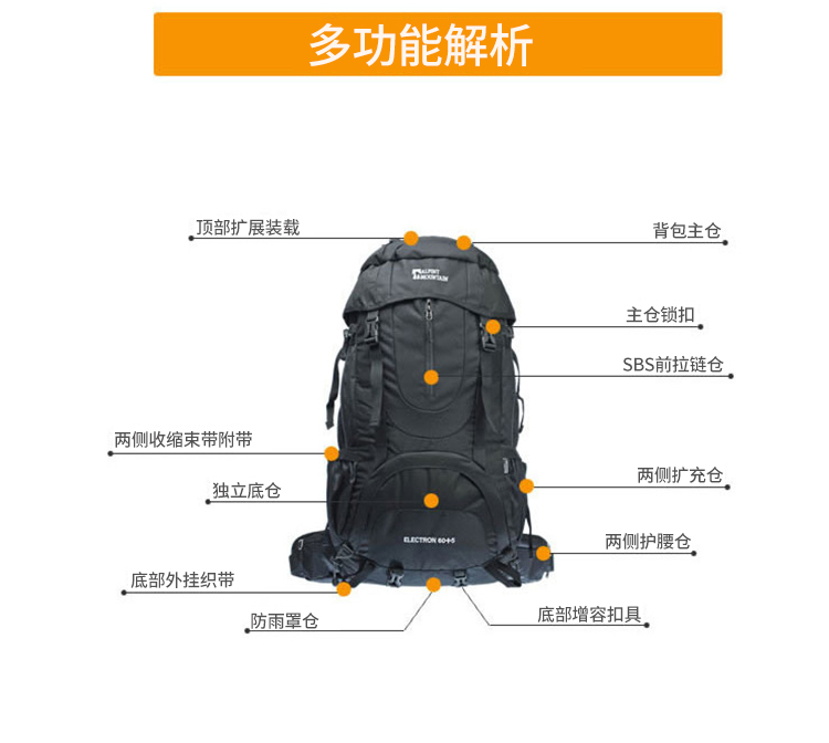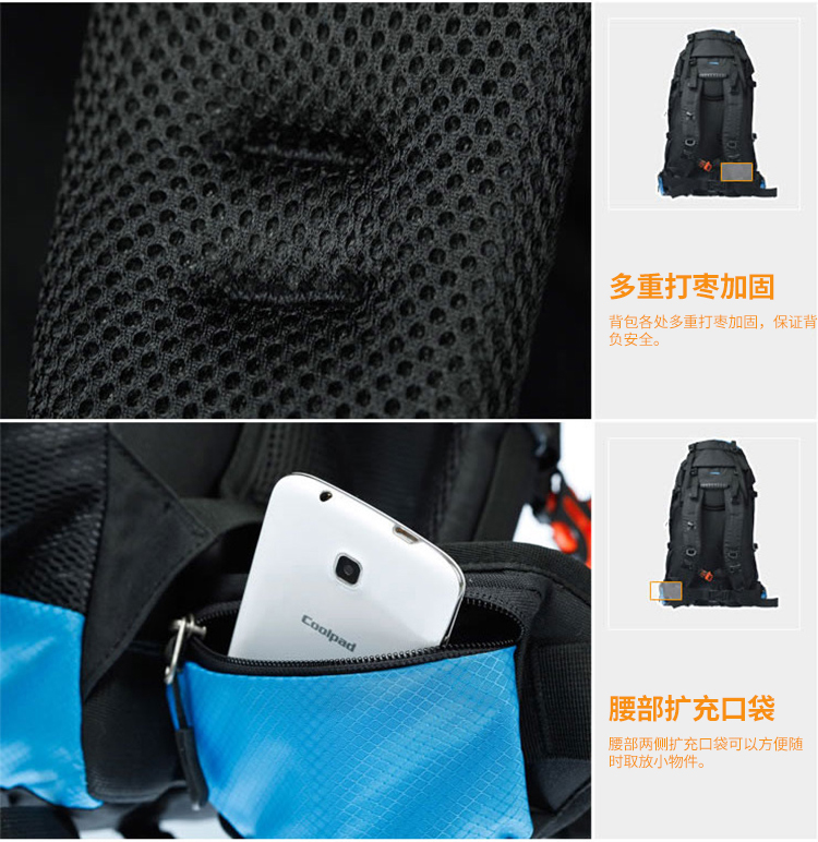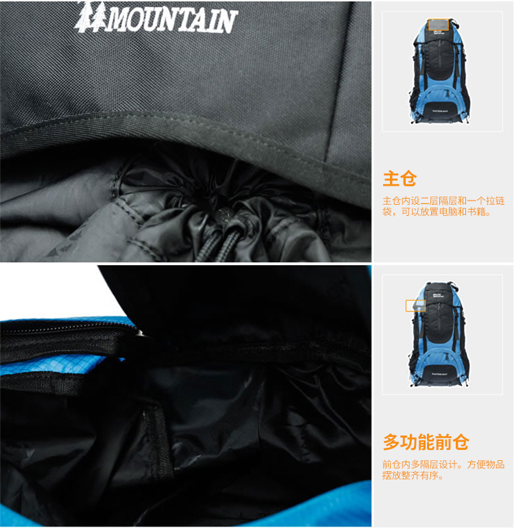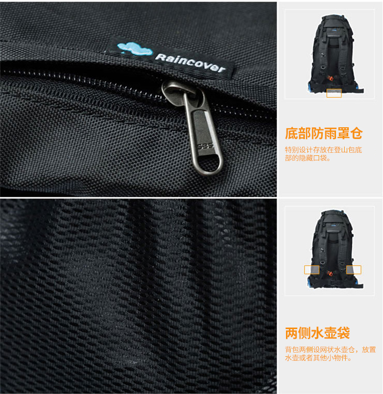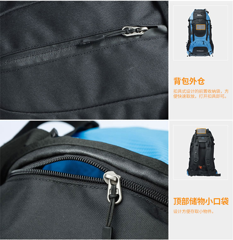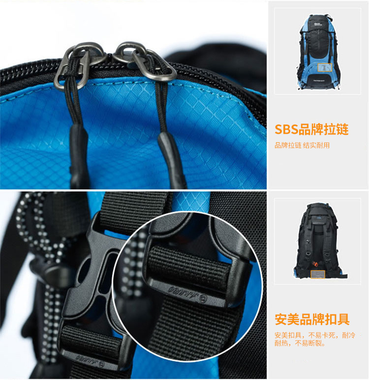 商品名称:埃尔蒙特 登山包双肩包附带防雨罩65L 610-026 湖蓝