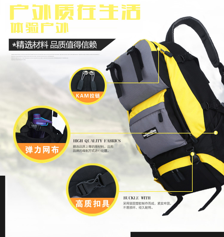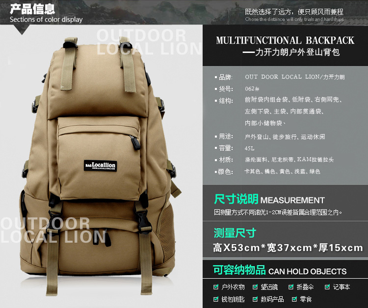 商品名称:力开力朗 户外休闲多功能双肩背包登山包旅行包 062 黑色 45L