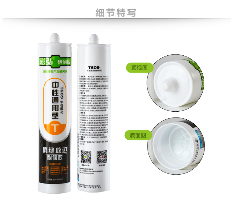商品名称:彩弘 中性玻璃胶 通用型填缝密封胶 防水胶水 耐候硅胶 收边胶强力胶水 透明2支装 T609