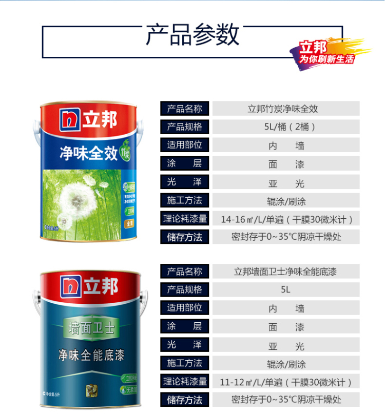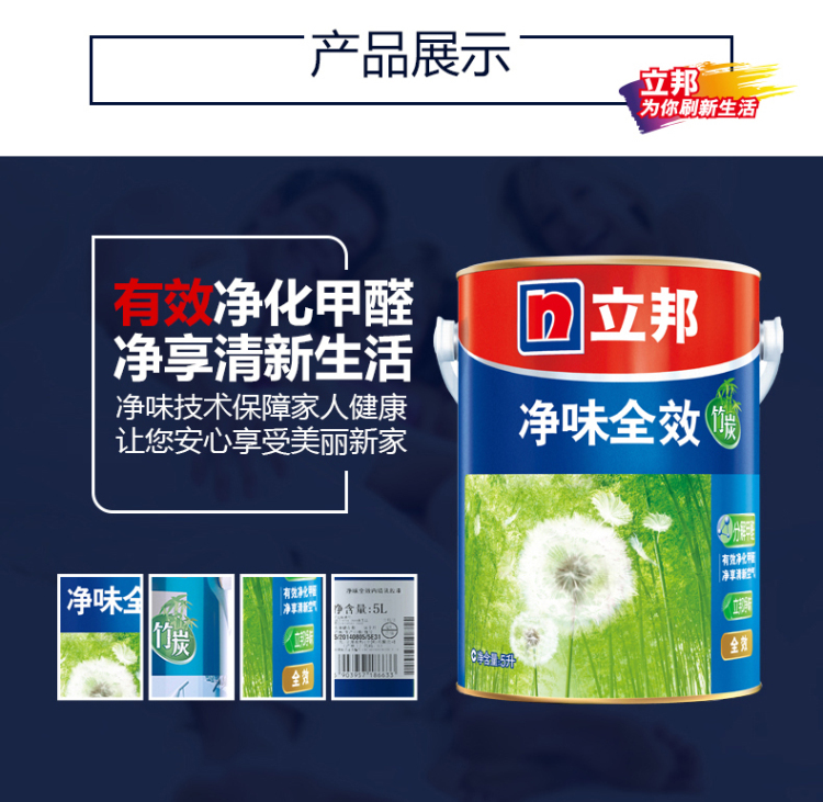 商品名称:立邦 竹炭净味全效套装 油漆涂料 无添加内墙乳胶漆15L套装