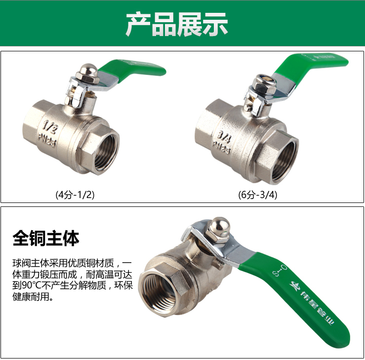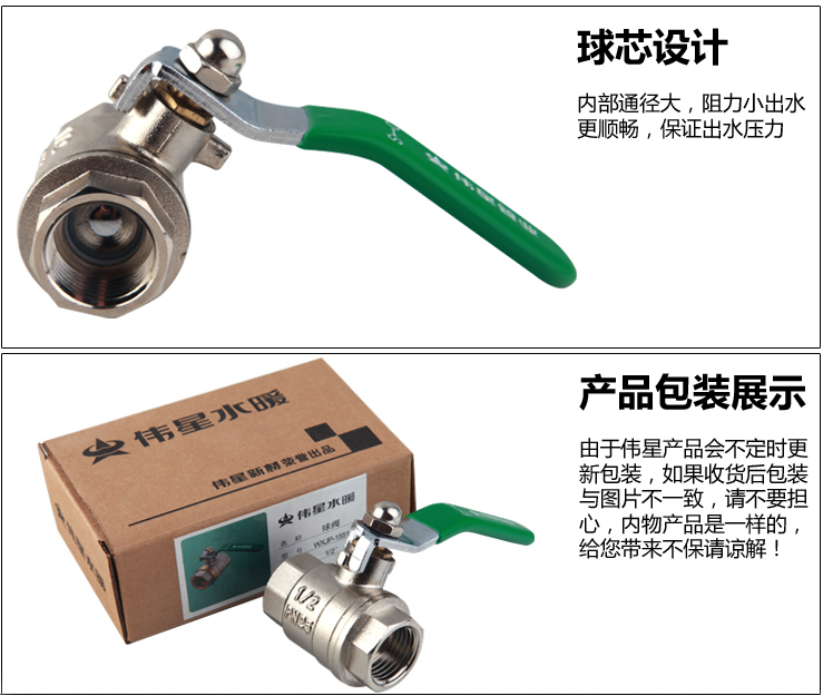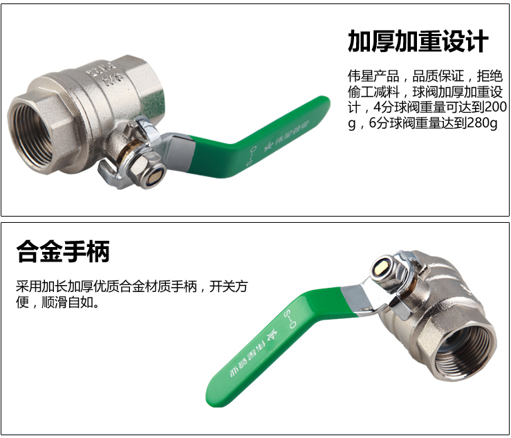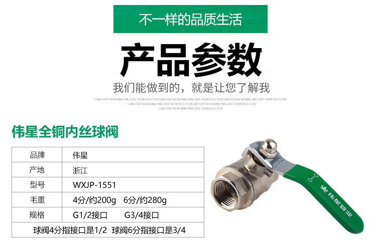 商品名称:伟星 铜球阀 加厚铜内丝球阀 自来水开关丝口水阀 水暖管件铜阀门 4分(1/2丝口) 5个装