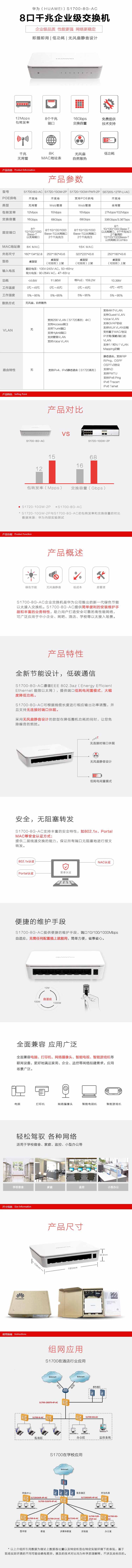 ★ 华为/Huawei S1700-8G-AC 桌面式非网管交换机 8个10/100/1000Base-T以太网端口