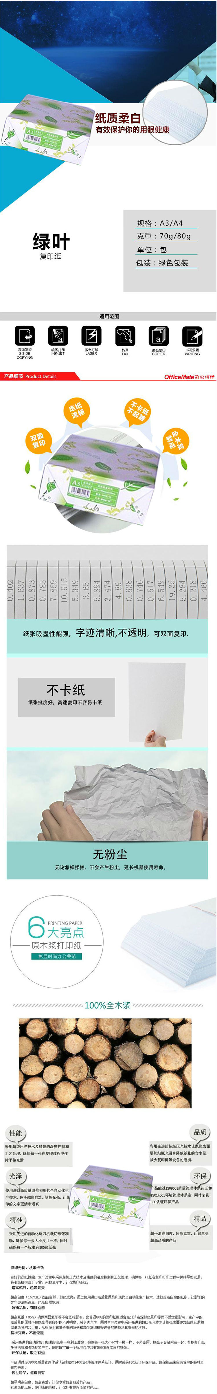 商品名称:★ 绿叶/GreenLeaf 复印纸 A4 80g 500p 绿白包装 10包/箱