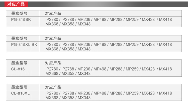 适用机型:适用于iP2780 iP2788 MP236 MP498 MP288 MP259 MX428 MX418 MX368 MX358 MX348