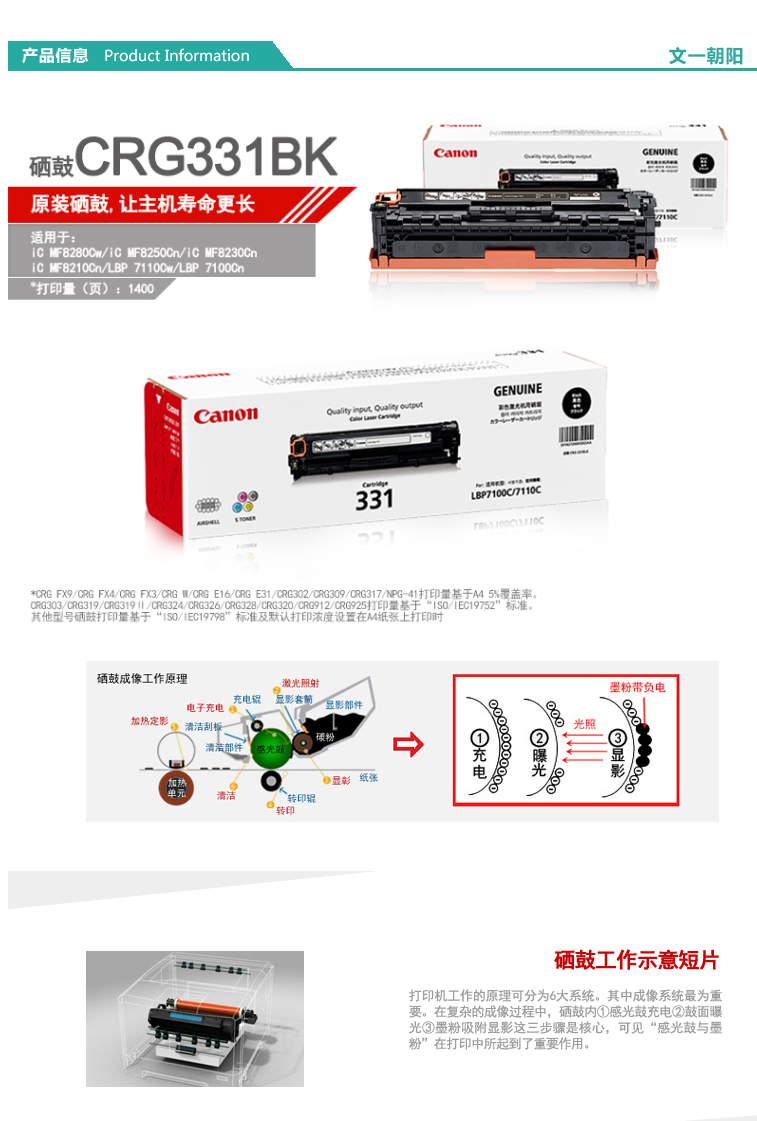商品名称:★ 佳能/Canon CRG-331BK 黑色 硒鼓 适用于LBP7110Cw 7100Cn MF8280W 8250CN 8230CN 8210cn 628CW 621cn 626cn 628cw 623cn 打印量1400页