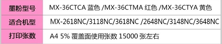 商品名称:★ 夏普/SHARP MX-36CTMA 碳粉盒 适用于夏普 MX-2618NC PCL6 红色 打印量15000页