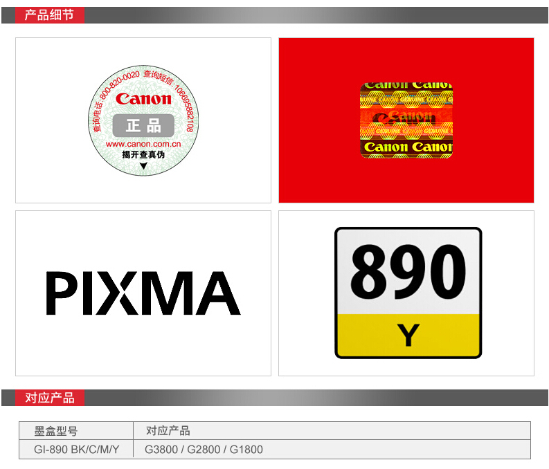商品名称:★ 佳能/Canon GI-890 Y 黄色墨水 适用于G1800 G2800 G3800 G4800 G1810 G2810 G3810G4810 打印量7000页
