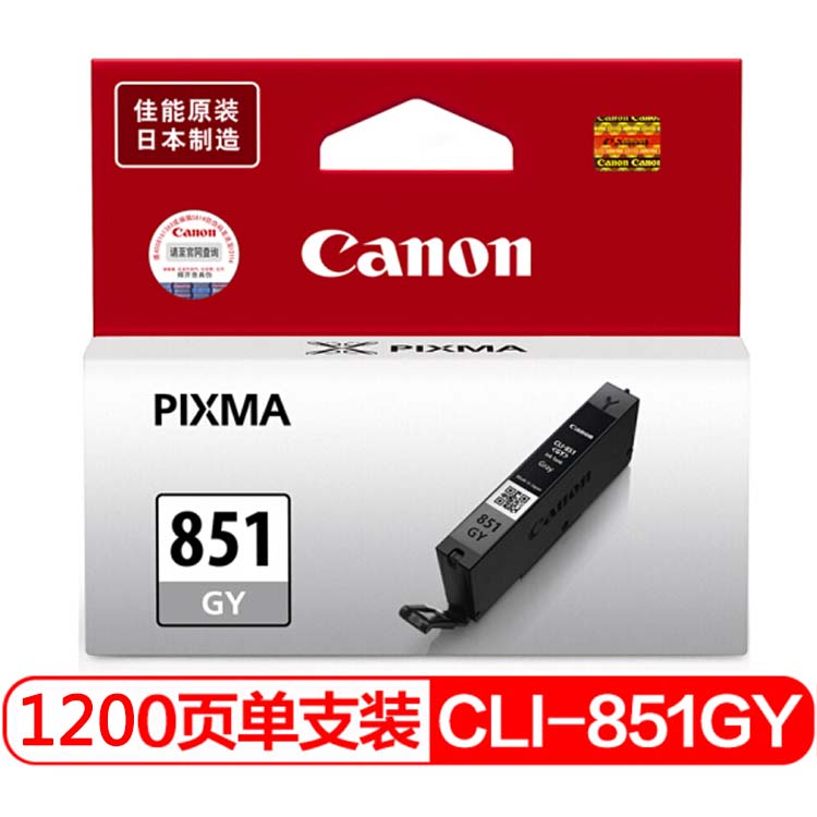 商品名称:★ 佳能/Canon CLI-851GY 灰色 标容墨盒 适用于 MG7580 MG7180 MG6380 iP8780 打印量780页