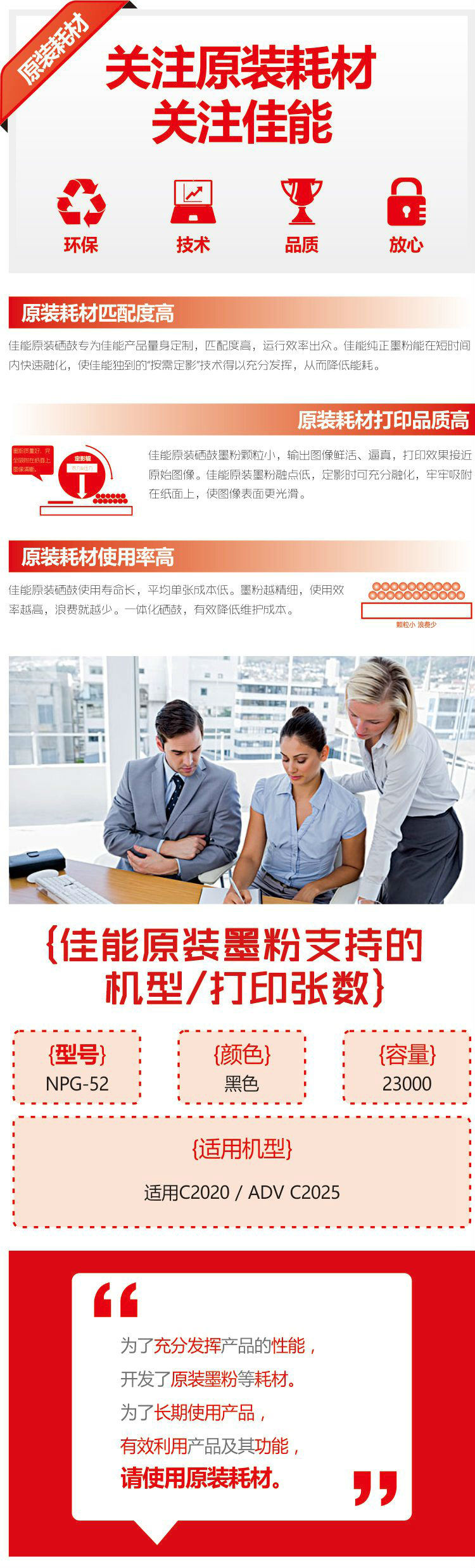 商品名称:★ 佳能/Canon NPG-52 碳粉 黑色 打印量23000页 适用于C2025/C2030/C2220/C2225/C2230/C2220L