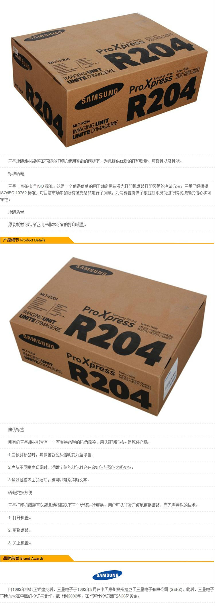 商品名称:★ 三星/Samsung MLT-R204 黑色硒鼓 适用于SL-M3325ND XIL,SL-M3825D XIL,SL-M3825ND XIL,SL-M4025ND XIL,SL-M4025NX XIL,SL-M3375HD X A4