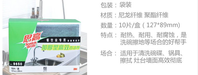 商品名称:3M 9650 加厚型百洁布 十片装 5英寸×3.5英寸 10片/盒 (盒)