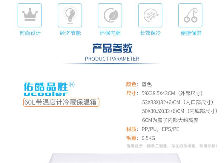 商品名称:佑酷品胜 60升 带温度大保温箱 外卖药品冷藏箱