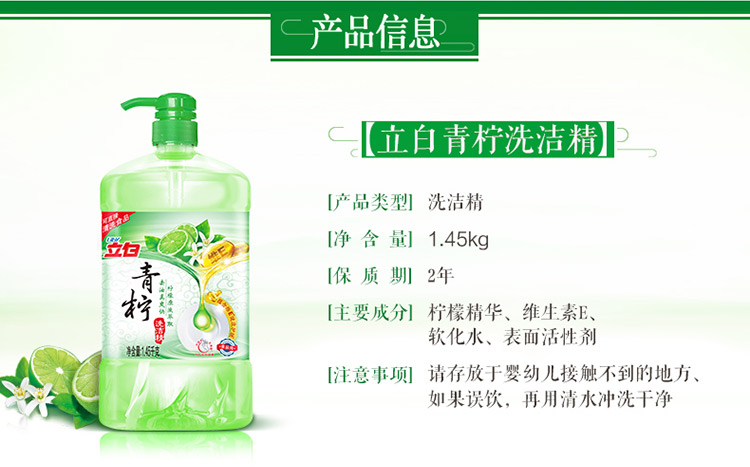 商品名称:立白 青柠洗洁精1.45kg/瓶