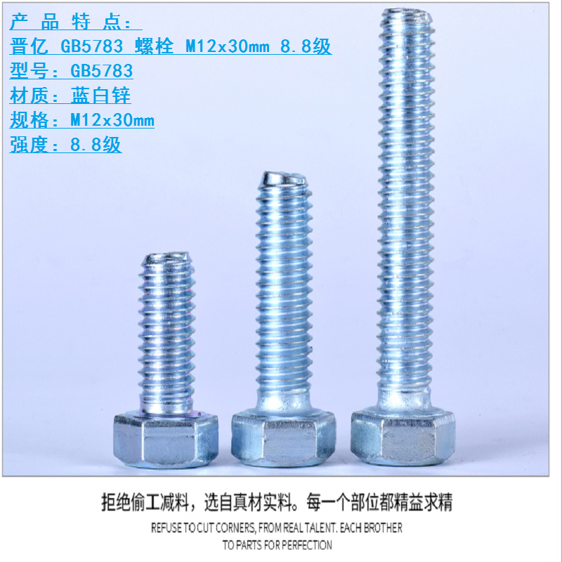 商品名称:国产 螺栓 M12x30mm 8.8级(单位:个) GB5783