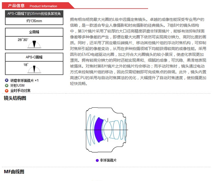 商品名称:佳能/Canon 镜头(85mm F1.2L II USM)