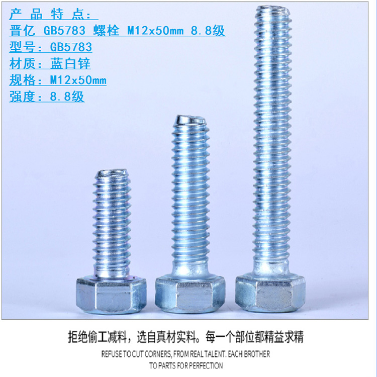 商品名称:国产 螺栓 M12x50mm 8.8级(单位:个) GB5783