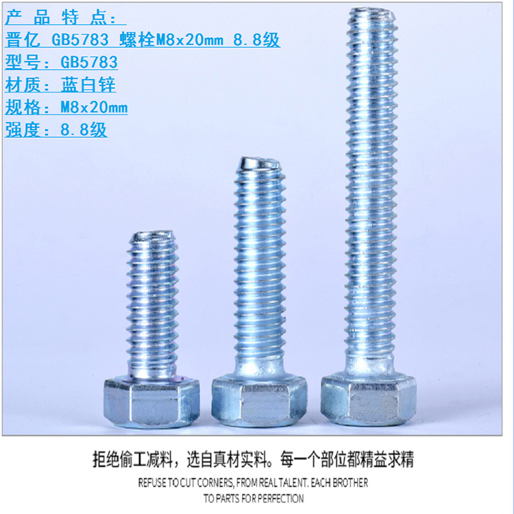 国产 螺栓 M8x20mm 8.8级(单位:个) GB5783