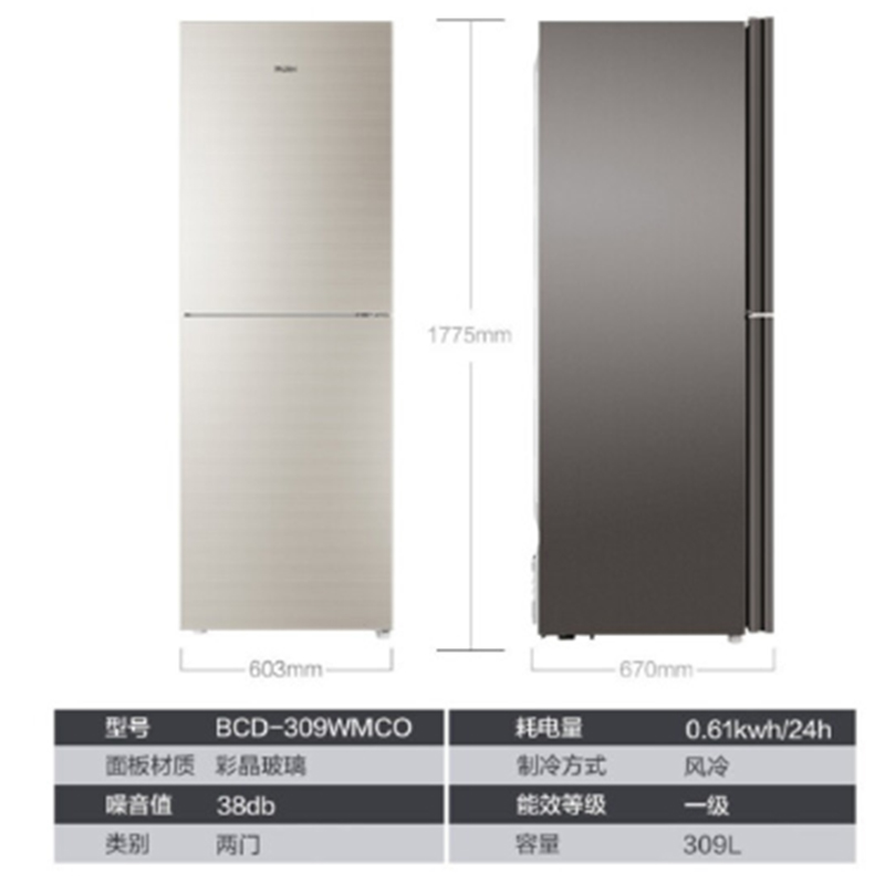 商品名称:海尔/Haier 冰箱 (双门风冷无霜309升) 金色 BCD-309WMCO