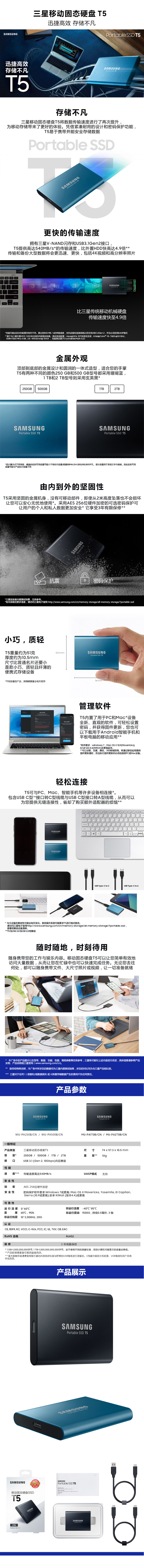 商品名称:三星 500G T5系列移动固态硬盘 MU-PA500B/CN