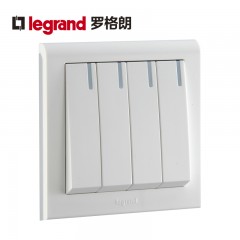 罗格朗 开关插座面板K5 四开单控带灯四联开关带LED开关